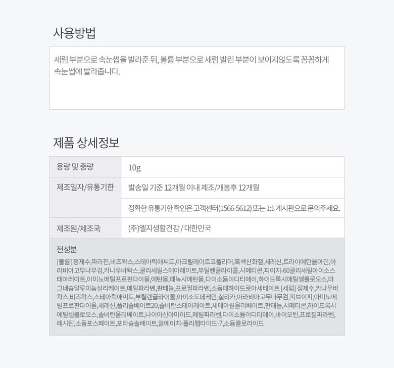 3. 제조연월과 사용기한 | 주문 시점으로부터 최근 1년 이내에 제조된 상품으로 배송/제조일로부터 24개월/개봉후 1년 이내 사용 |
