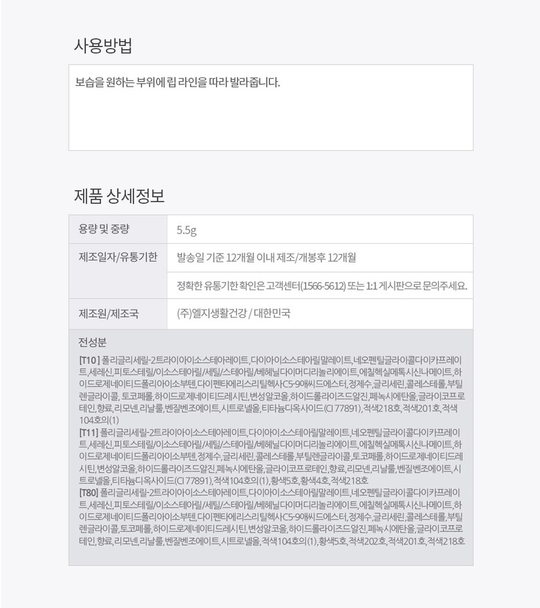 | 5. 제조사 | (주)LG생활건강/대한민국 |