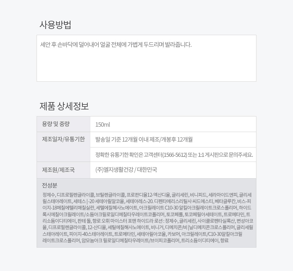 1. 용량 및 중량 150ml