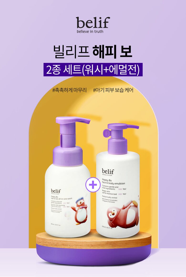 [빌리프] 해피 보 키즈 바디케어 2종 세트 (올인원 워시+바디에멀전)