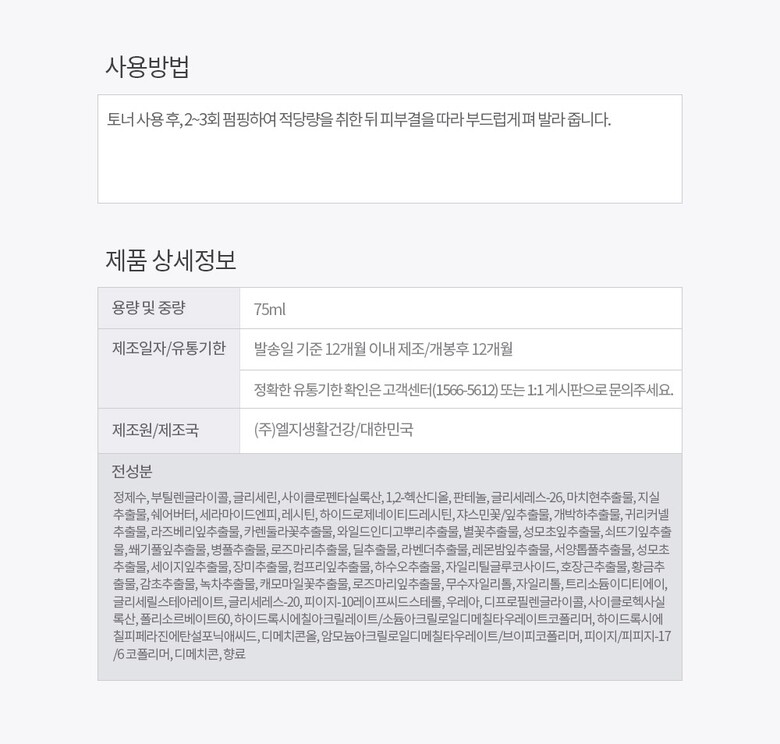 | 5. 제조사 | (주)LG생활건강 /(주)LG생활건강 |