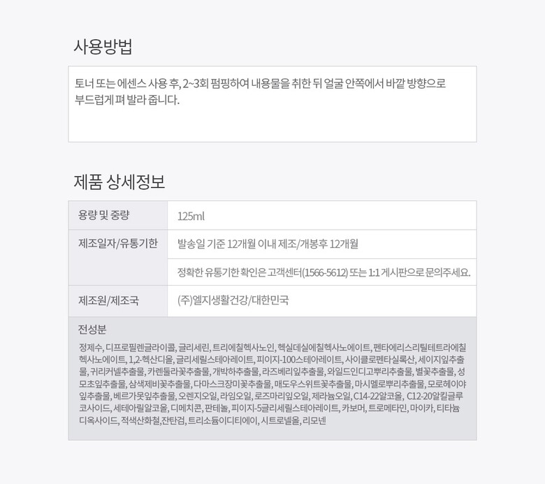 | 5. 제조사 | (주)LG생활건강 /(주)LG생활건강 |