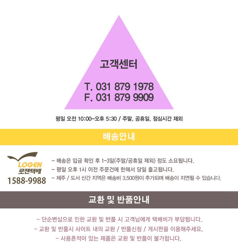 • 모든 규정은 전자상거래법에 의거하며, 택배사정으로 배송이 지연된 경우 재화를 공급받은 날로부터 7일 이내에 반품 가능합니다.