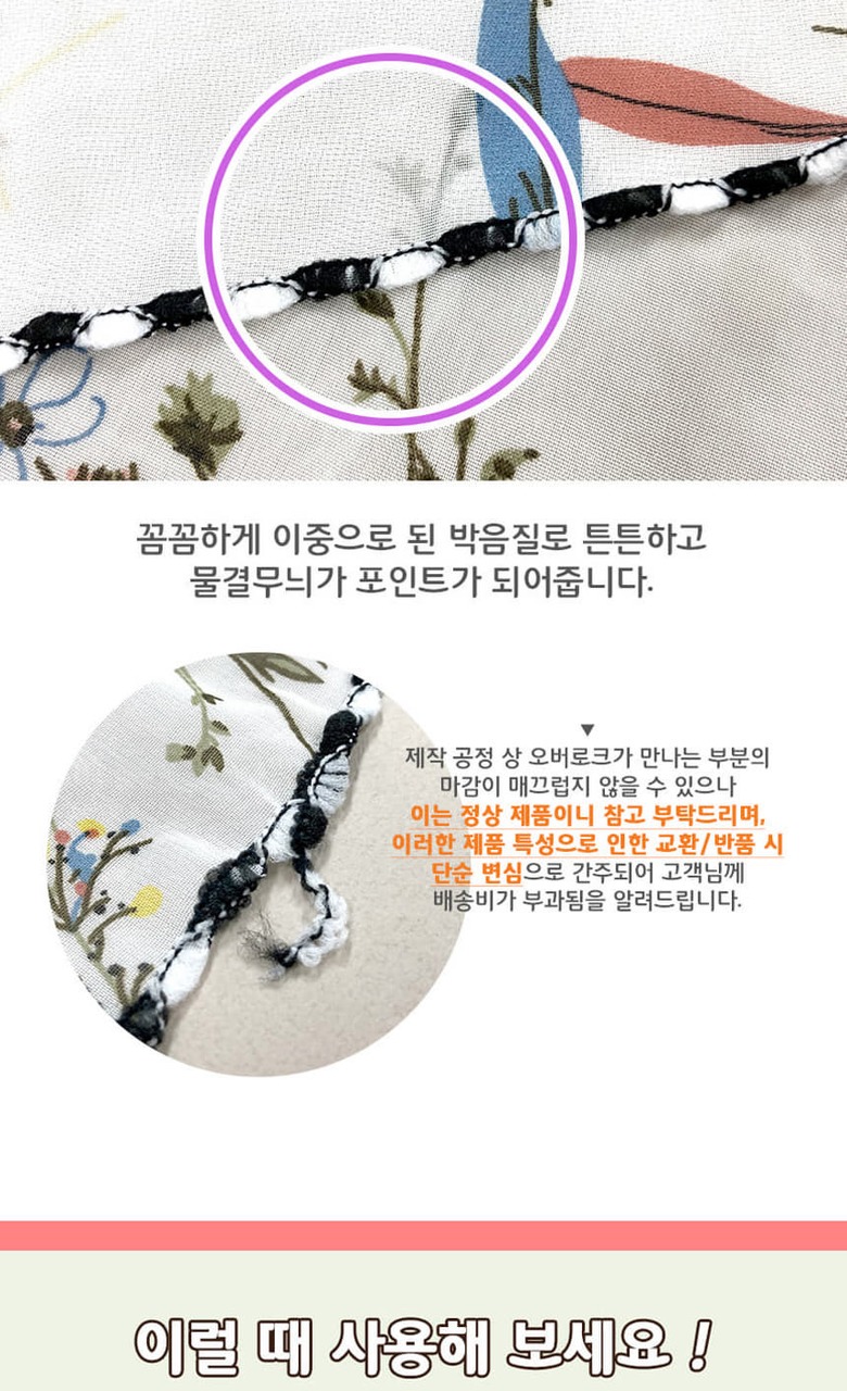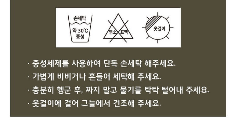 • 처음 배송된 상품상태와 다를 경우(세탁/착용 후 외출하신 경우) 반품이 불가합니다.