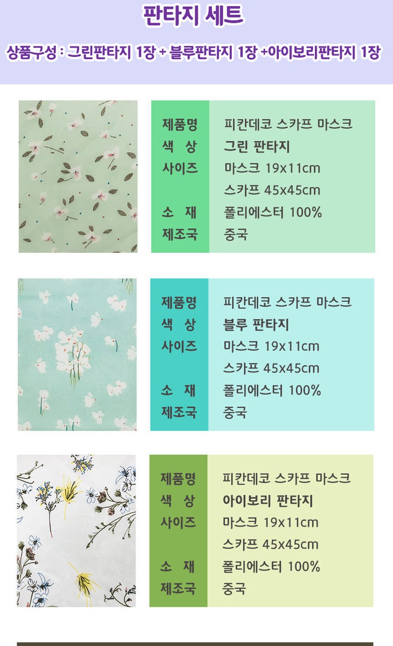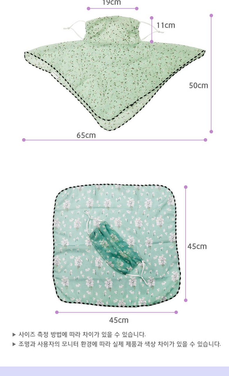 3. 치수 마스크 19x11cm, 스카프 45x45cm