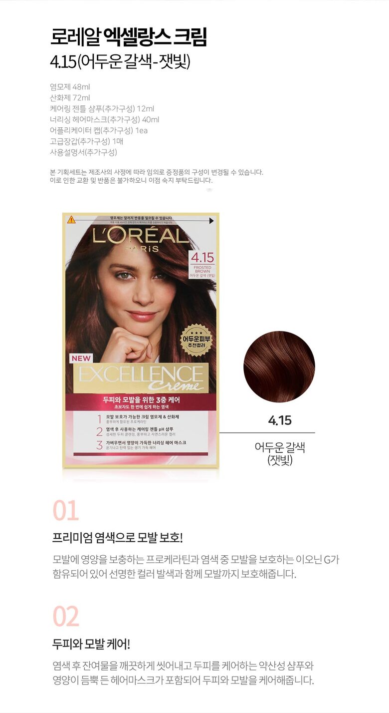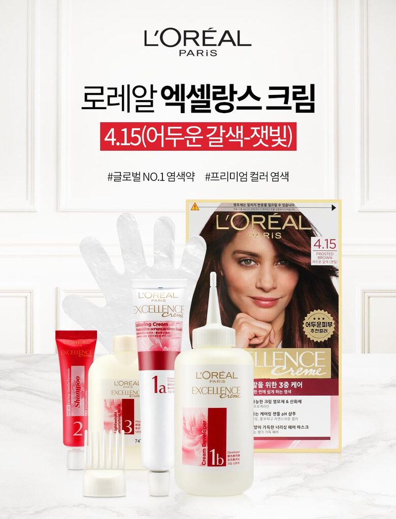로레알 뉴엑셀랑스 크림 염색약 4.15/어두운갈색_잿빛