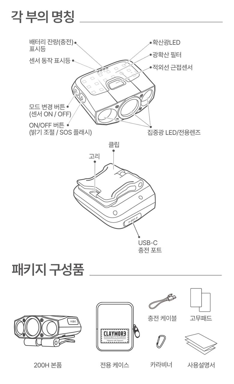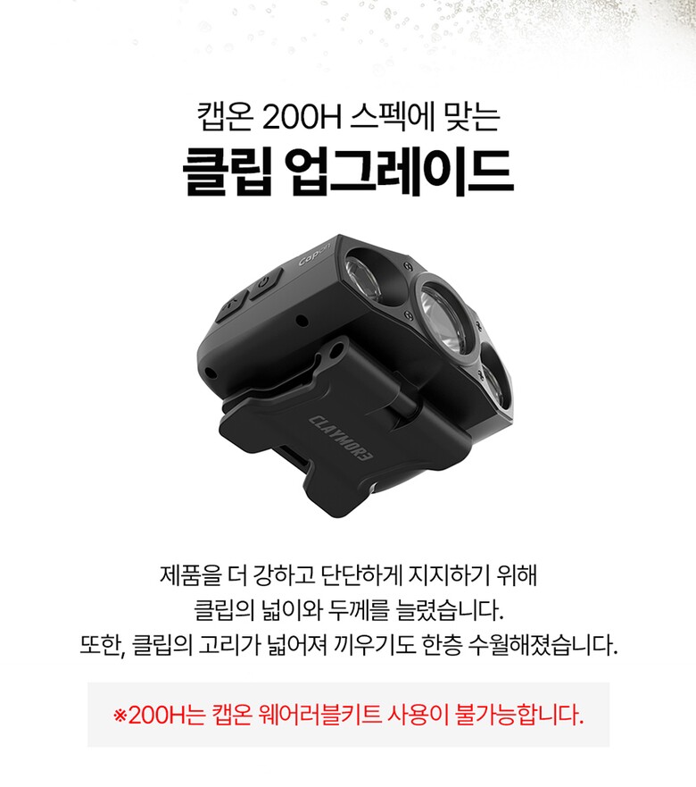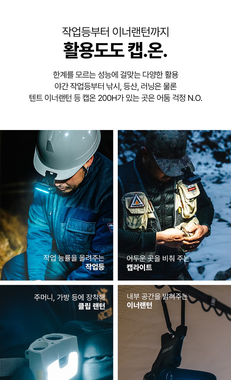 크레모아 캡온 200H 캡라이트 충전식 LED 헤드랜턴 등산 낚시 안전모 작업등