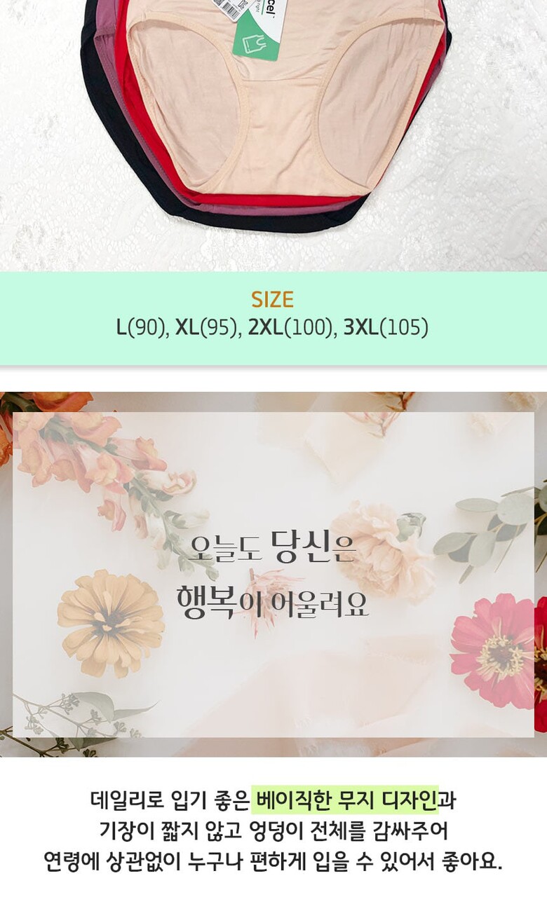 텐셀 기본 무지팬티 1매 L-3XL 빅사이즈 데일리팬티