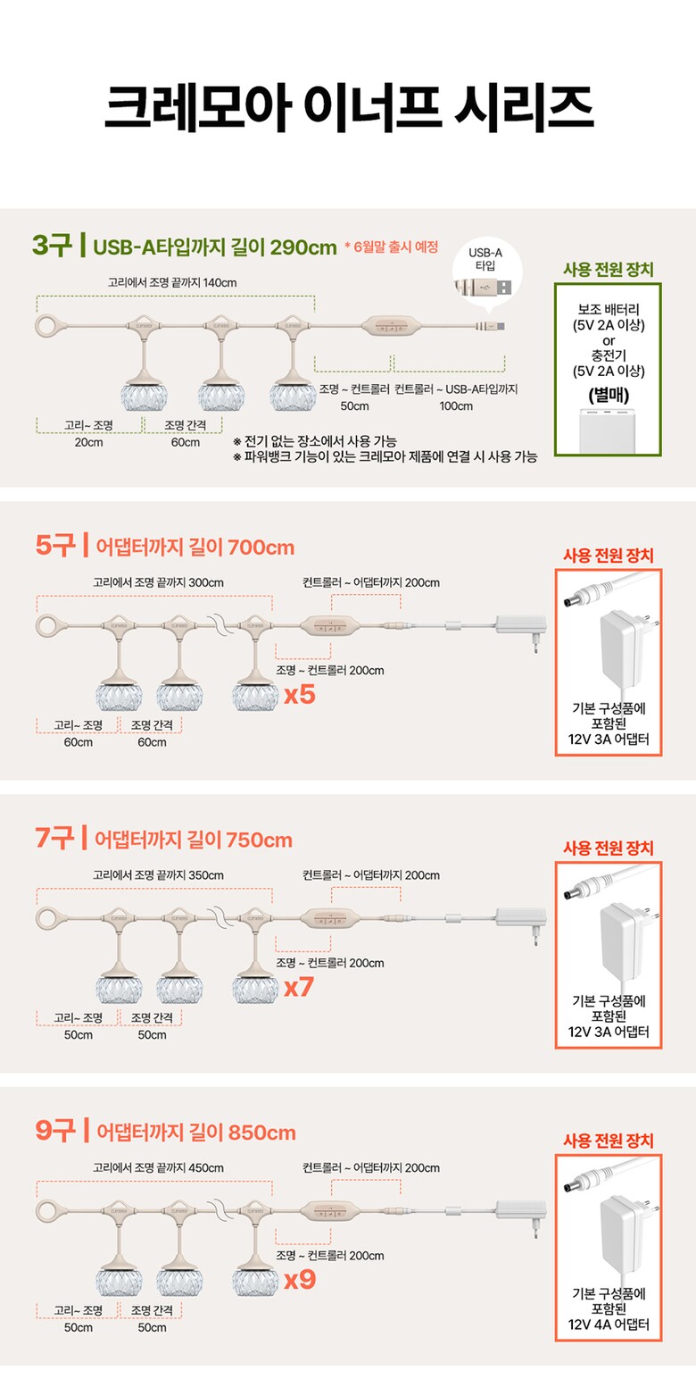 크레모아 이너프 9 LED 캠핑랜턴 아웃도어 조명 스트링라이트 (전용 앱 컨트롤)