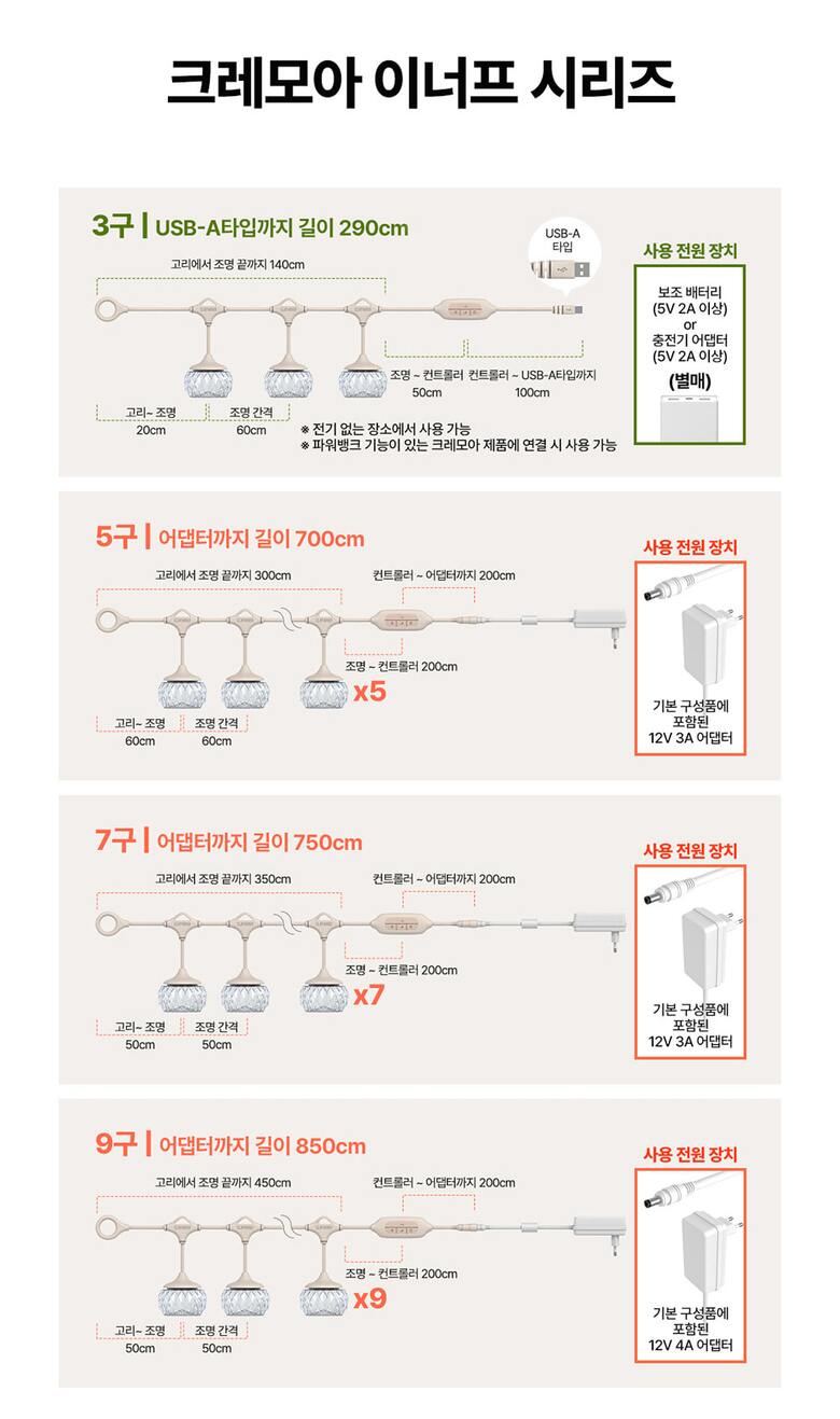 크레모아 이너프 9 LED 캠핑랜턴 아웃도어 조명 스트링라이트 (전용 앱 컨트롤)