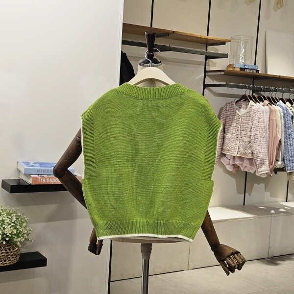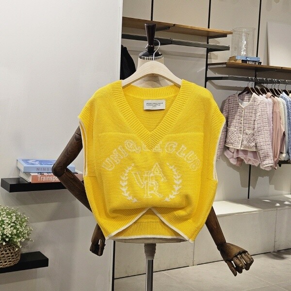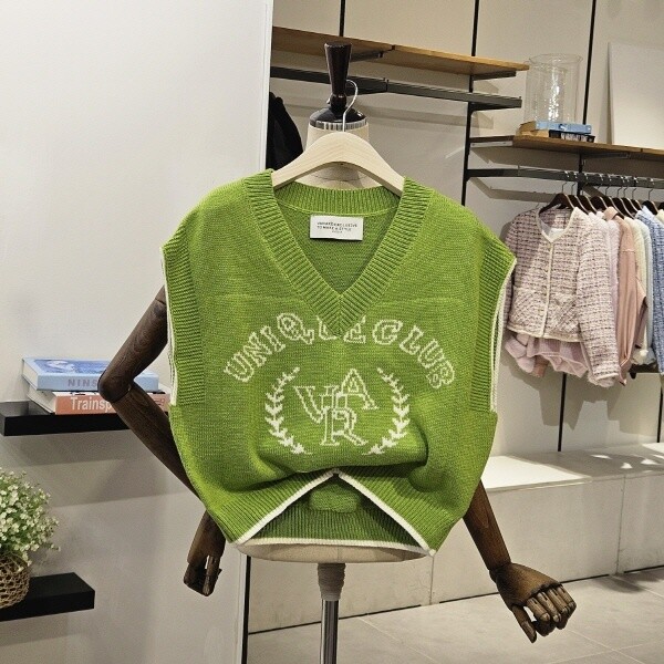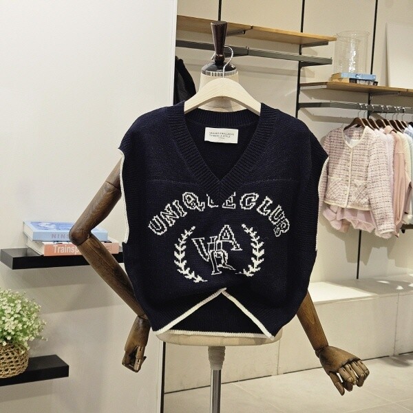 VB33KVMV01Z_배색 레터링 니트 조끼