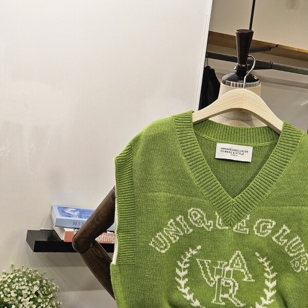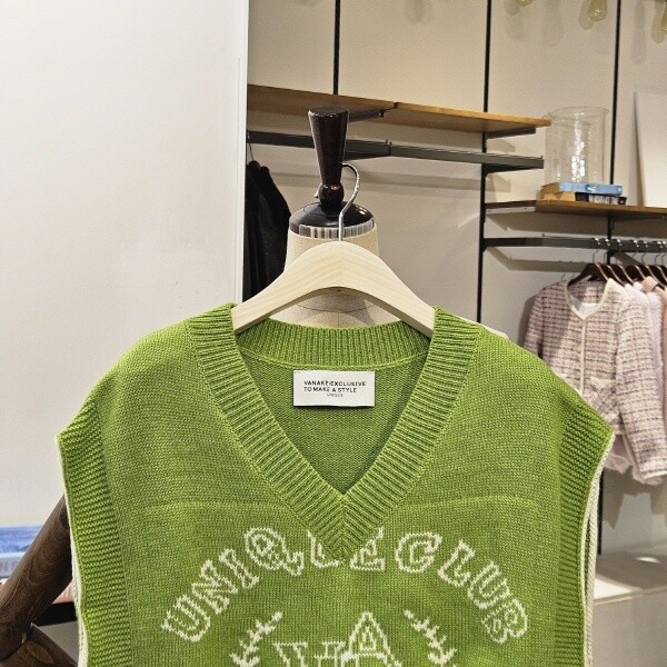 반에이크 VB33KVMV01Z 배색 레터링 니트 조끼