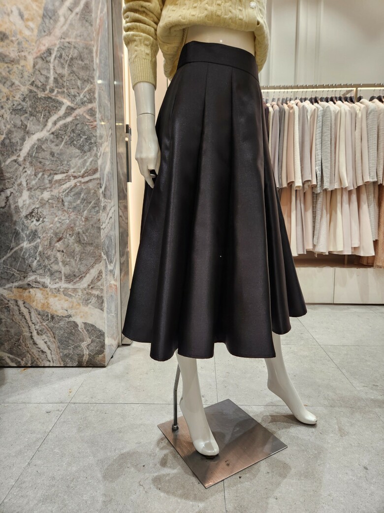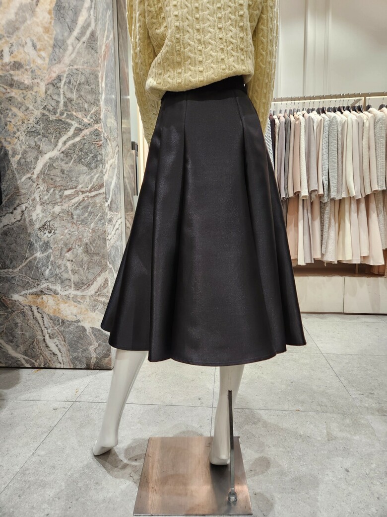 겹주름을 주어 A라인으로 퍼지는 플레어 스커트 디자인이