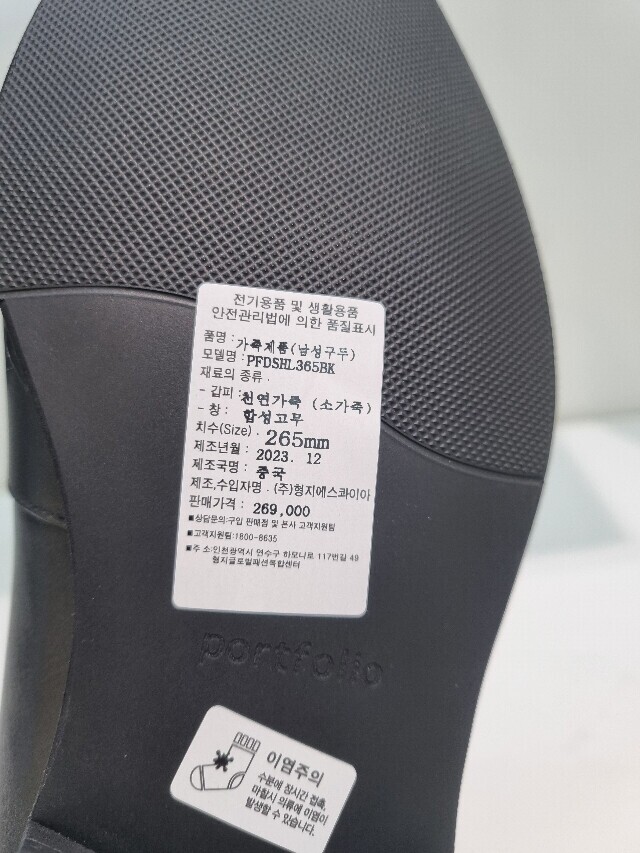 | 1. 제품 소재 (운동화인 경우에는 겉감, 안감을 구분하여 표시) | 소가죽 |