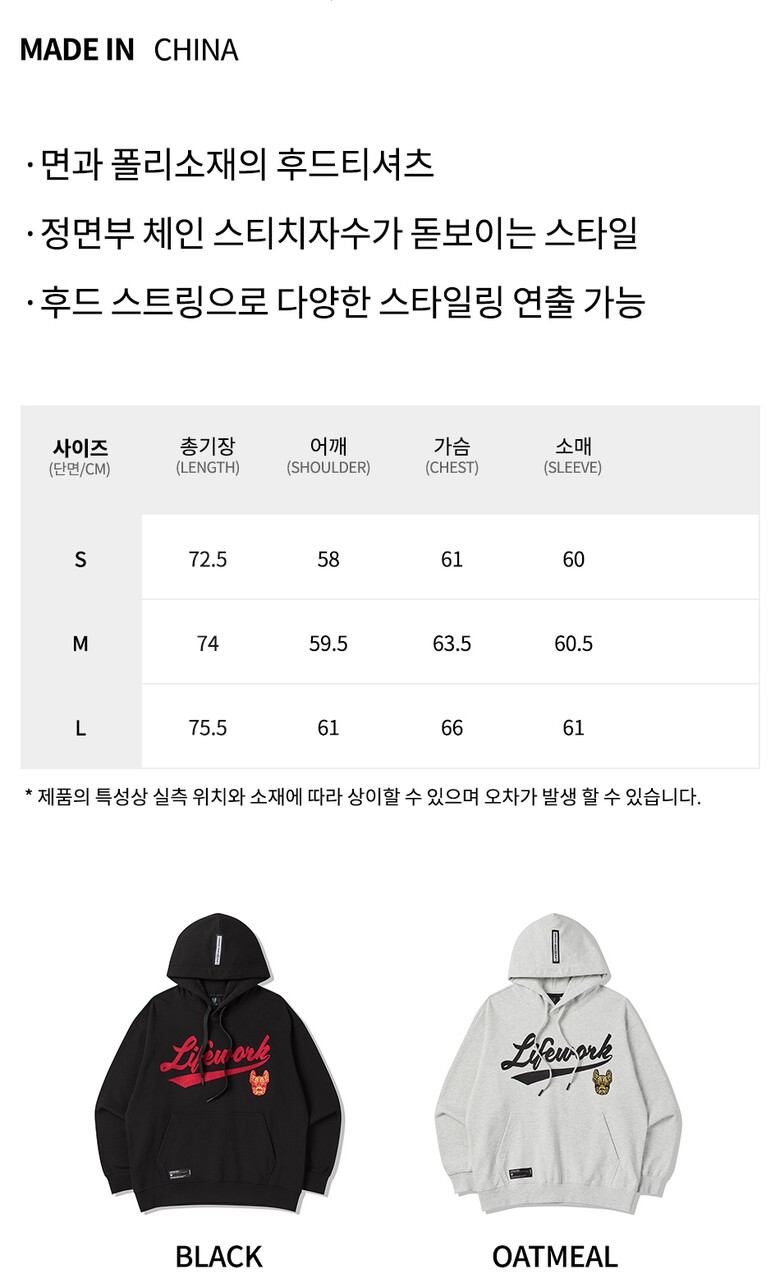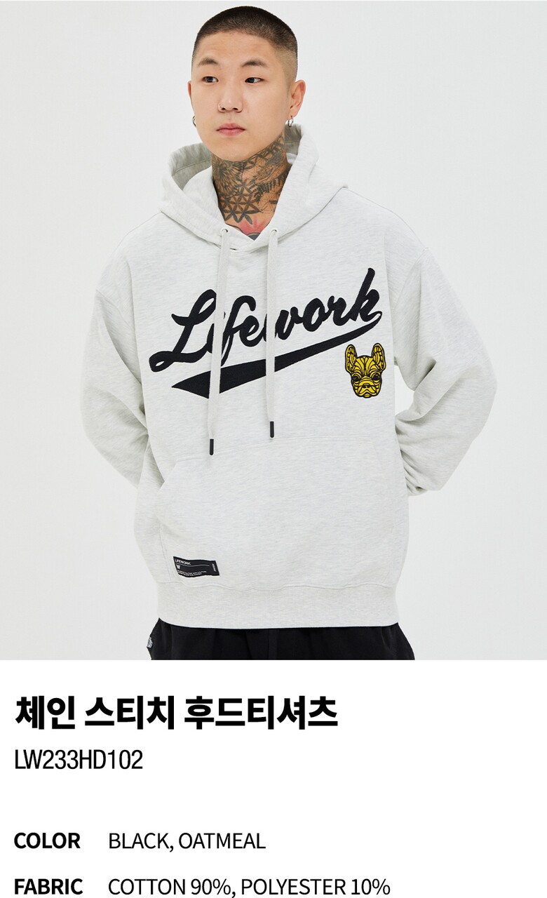 [라이프워크] 체인 스티치 후드 티셔츠 (LW233HD102-40)