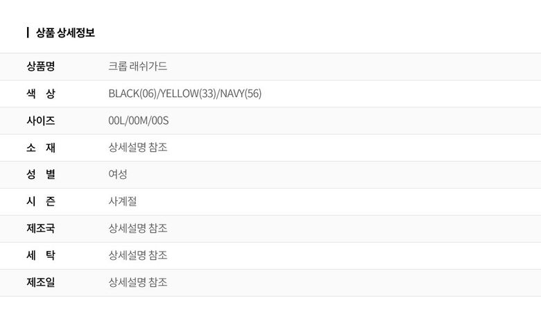 | 2. 색상 | BLACK(06)/YELLOW(33)/NAVY(56) |
