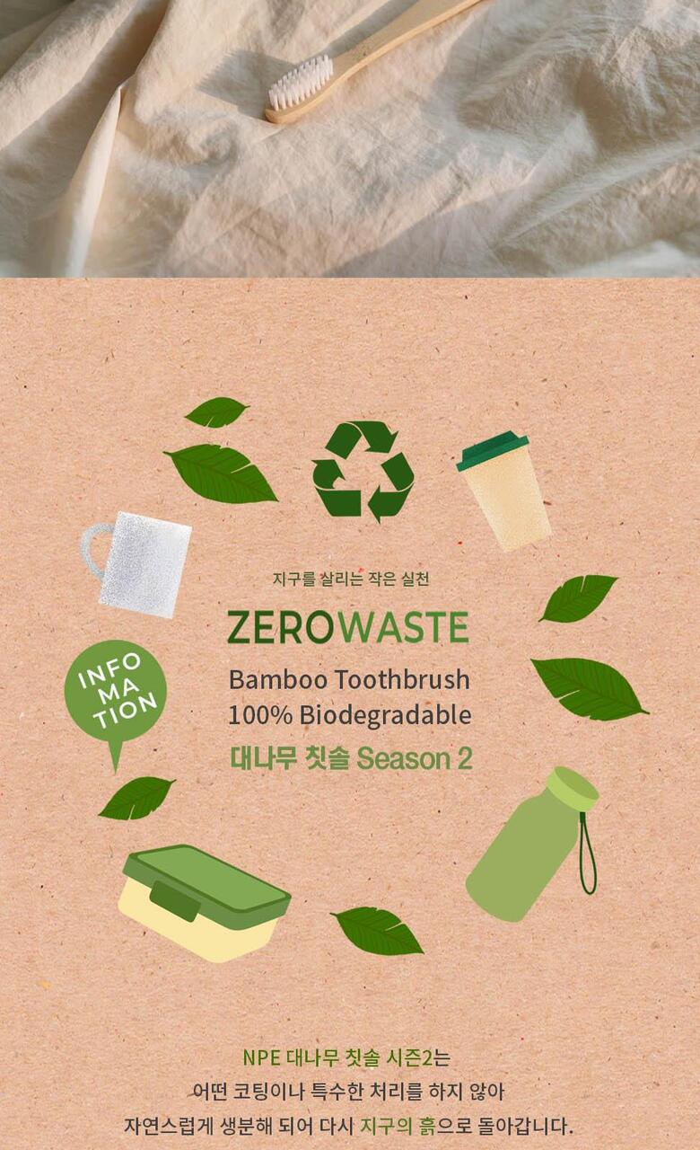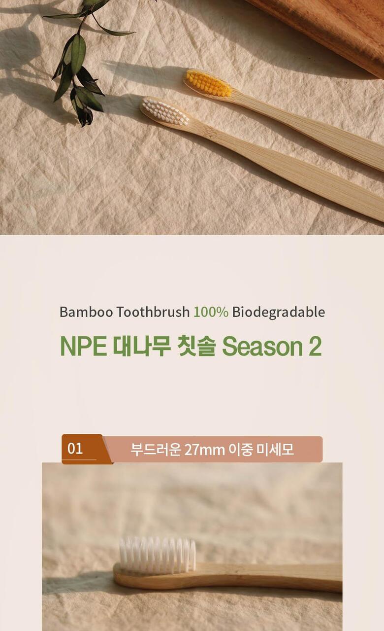 NPE 컬러 대나무 칫솔 시즌2 [제로웨이스트 제품 부드러운 미세모 나무 생분해 밤부 치솔]