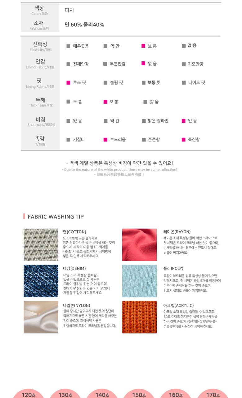 6. 세탁방법 및 취급시 주의사항 | 상세페이지 내 기재 |