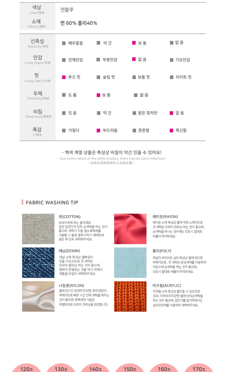 6. 세탁방법 및 취급시 주의사항 | 상세페이지 내 기재 |