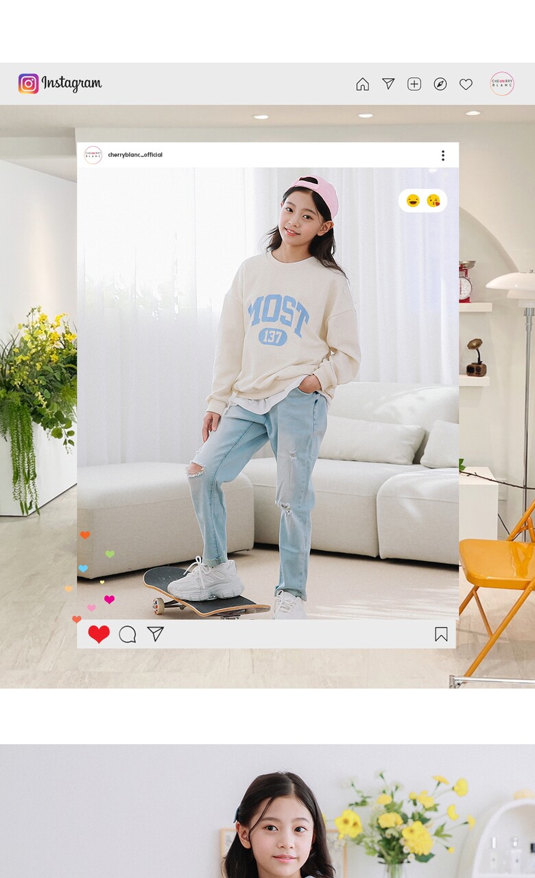 체리블랑 모스트맨투맨 여아,키즈,주니어