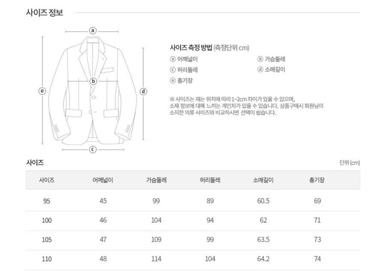 | 1. 제품 소재 (섬유의 조성 또는 혼용률을 백분율로 표시, 기능성인 경우 성적서 또는 허가서) | 겉감:폴리에스터56%, 모(양모)41%, 폴리우레탄3%, 안감:폴리에스터100% |