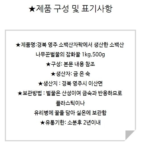 | 2. 생산자(수입자) | 소백산나무꾼벌꿀 |