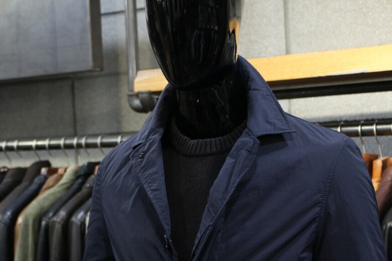 나일론소재의 겉감이 바스락거리며 특유의 원단텍스쳐가 세련된 느낌입니다