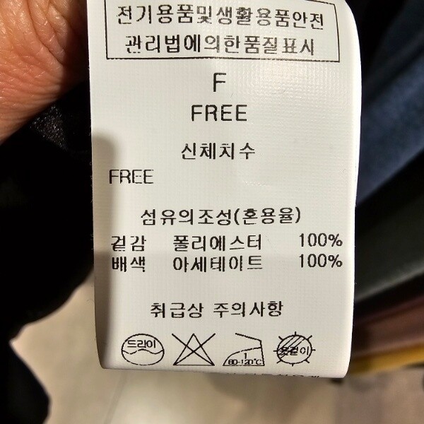 제품소재 : 겉감 안감 폴리에스터 100% / 배색 아세테이트 100%