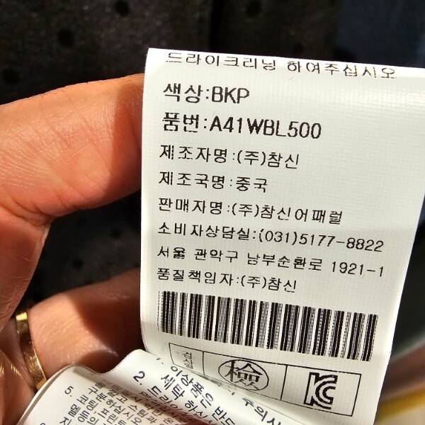 | 1. 제품 소재 (섬유의 조성 또는 혼용률을 백분율로 표시, 기능성인 경우 성적서 또는 허가서) | 겉감 안감 폴리에스터 100% / 배색 아세테이트 100% |