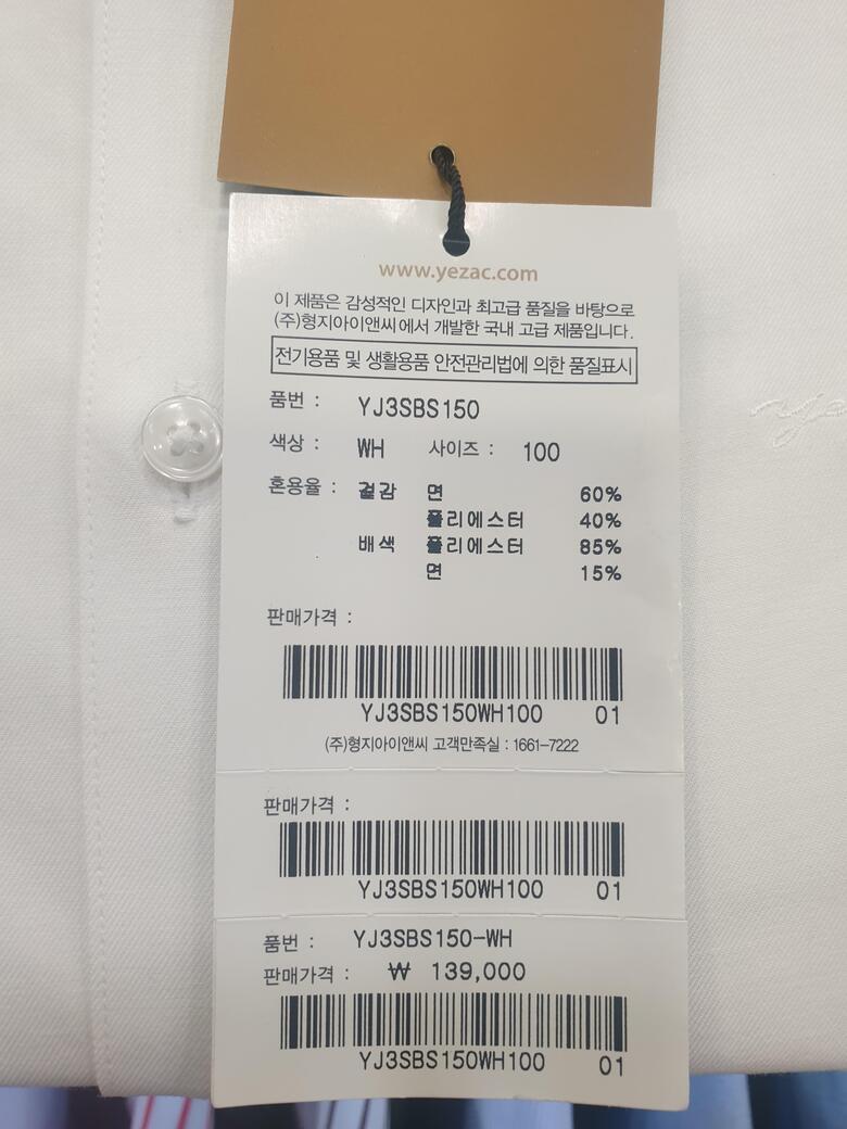 [예작셔츠] 화이트 면혼방 스냅버튼 슬림핏셔츠 YJ3SBS150WH
