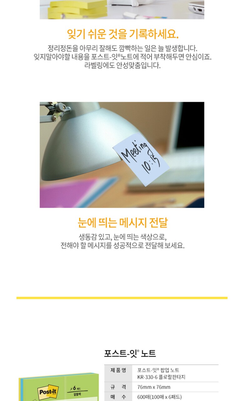 [3M] 포스트잇팝업리필노트컬렉션팩KR330-6 76x76mm6패드600매 플로랄판타지