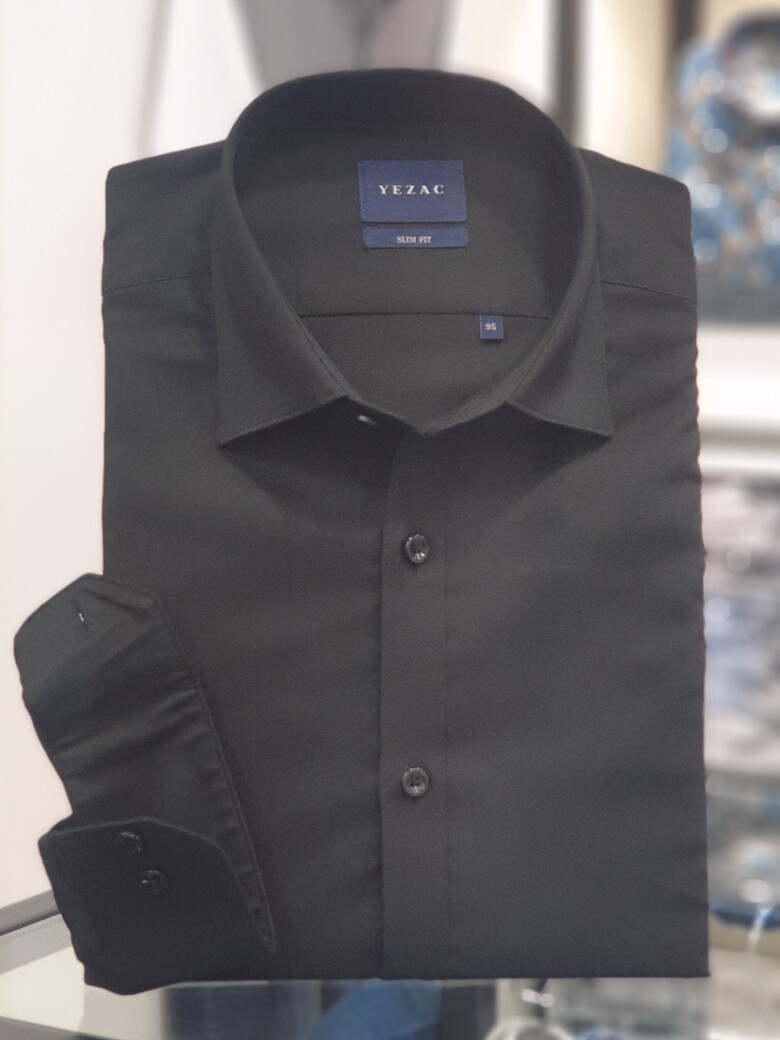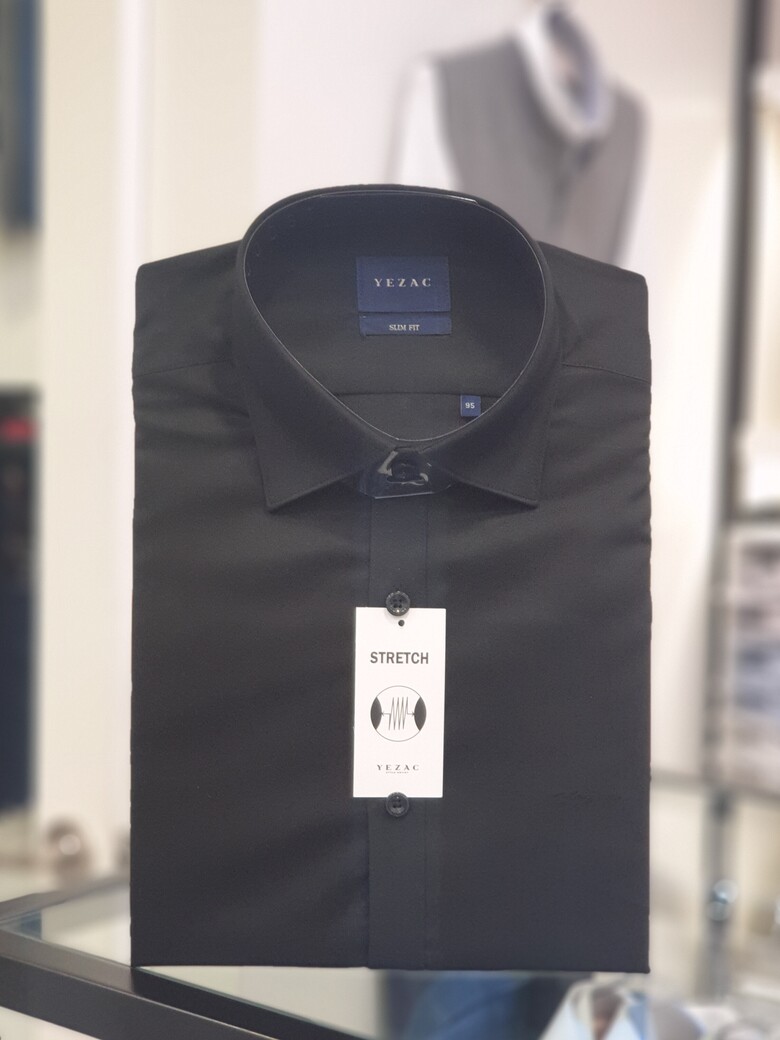 [예작셔츠] 블랙 사방스판 링클프리 슬림핏셔츠 YJ4 SBS 151 BK