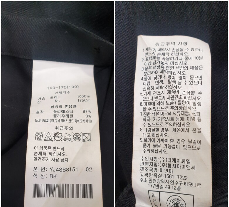 | 6. 세탁방법 및 취급시 주의사항 | 상품상세참조 |
