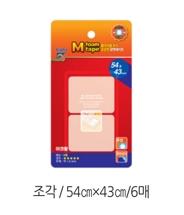 [M시리즈] M폼양면테이프클리어겔초강력조각 54mmx43mm6매