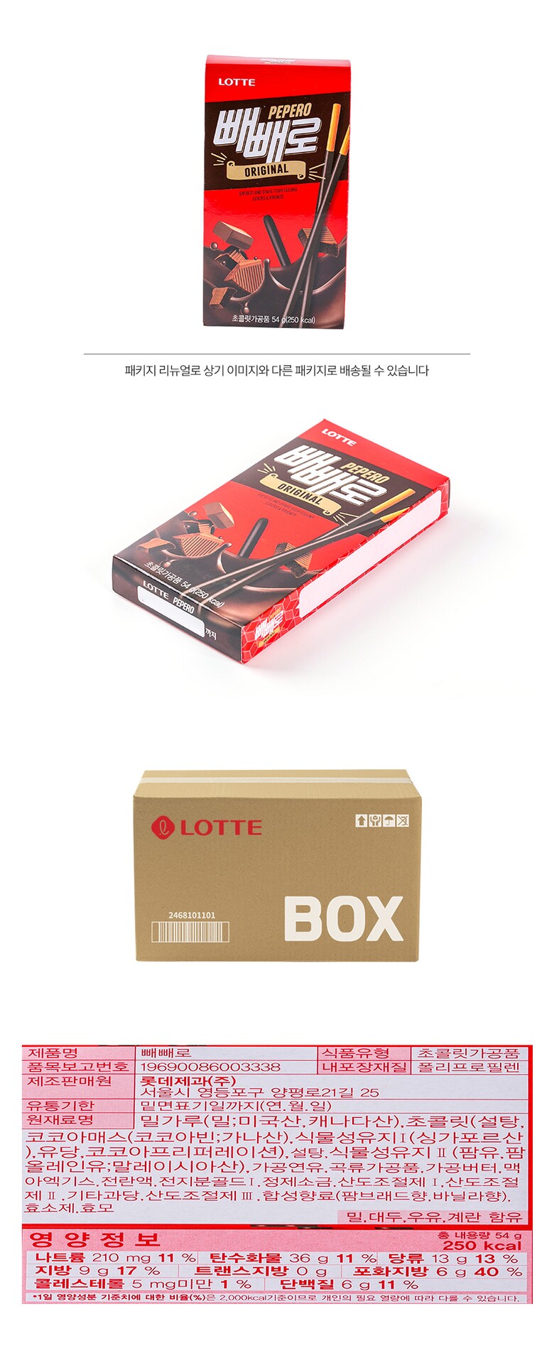 해당 상품은 [ 롯데 빼빼로 초코 54g 40입 ] 구성의 상품입니다.
