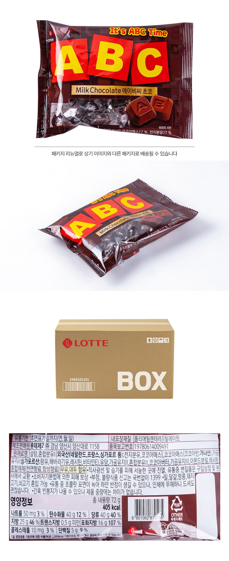 해당 상품은 [ 롯데 ABC 초코 72g 20입 ] 구성의 상품입니다.