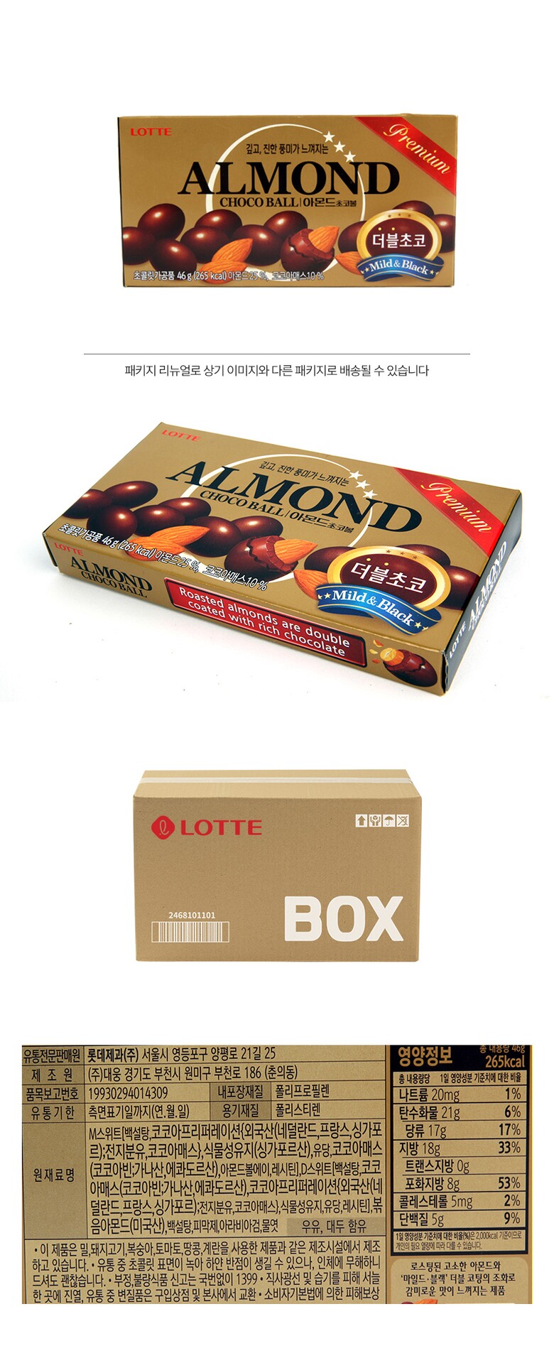 해당 상품은 [ 롯데 아몬드초코볼 46g 40입 ] 구성의 상품입니다.