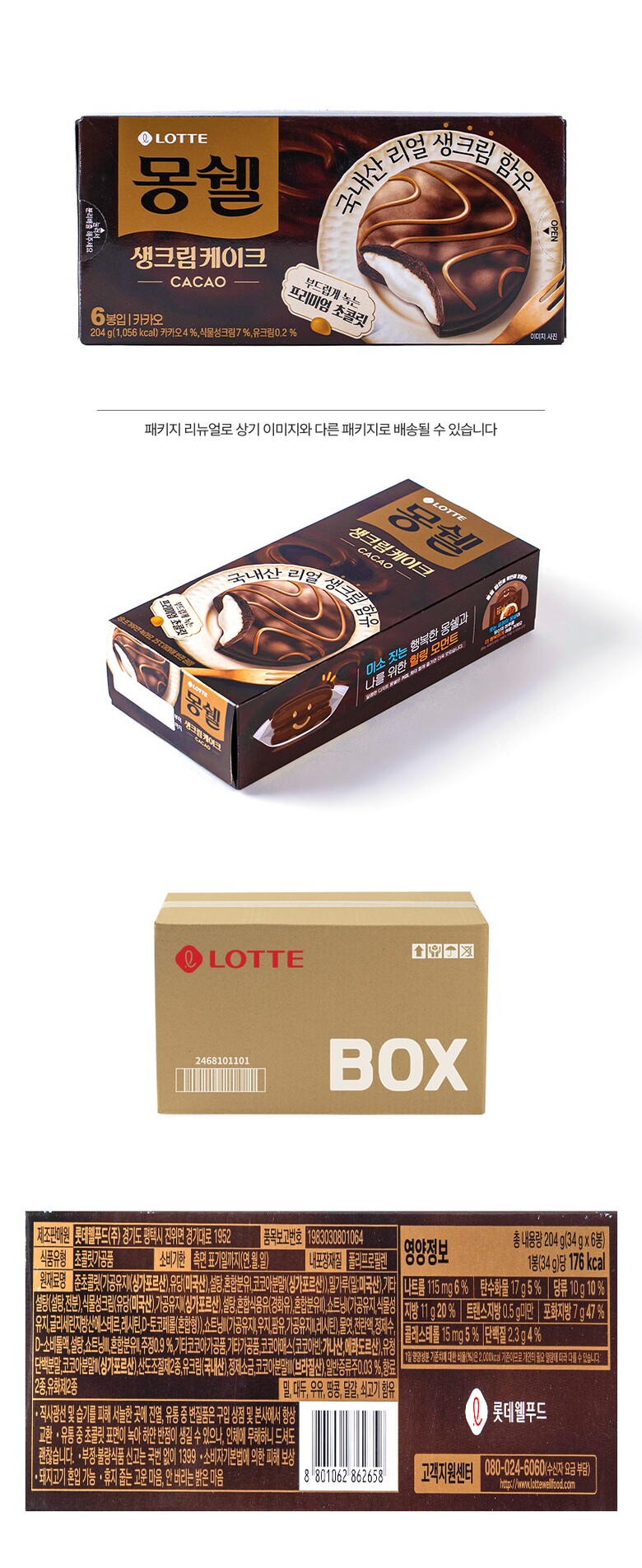해당 상품은 [ 롯데 몽쉘 생크림 카카오 소 192g 16입 ] 구성의 상품입니다.