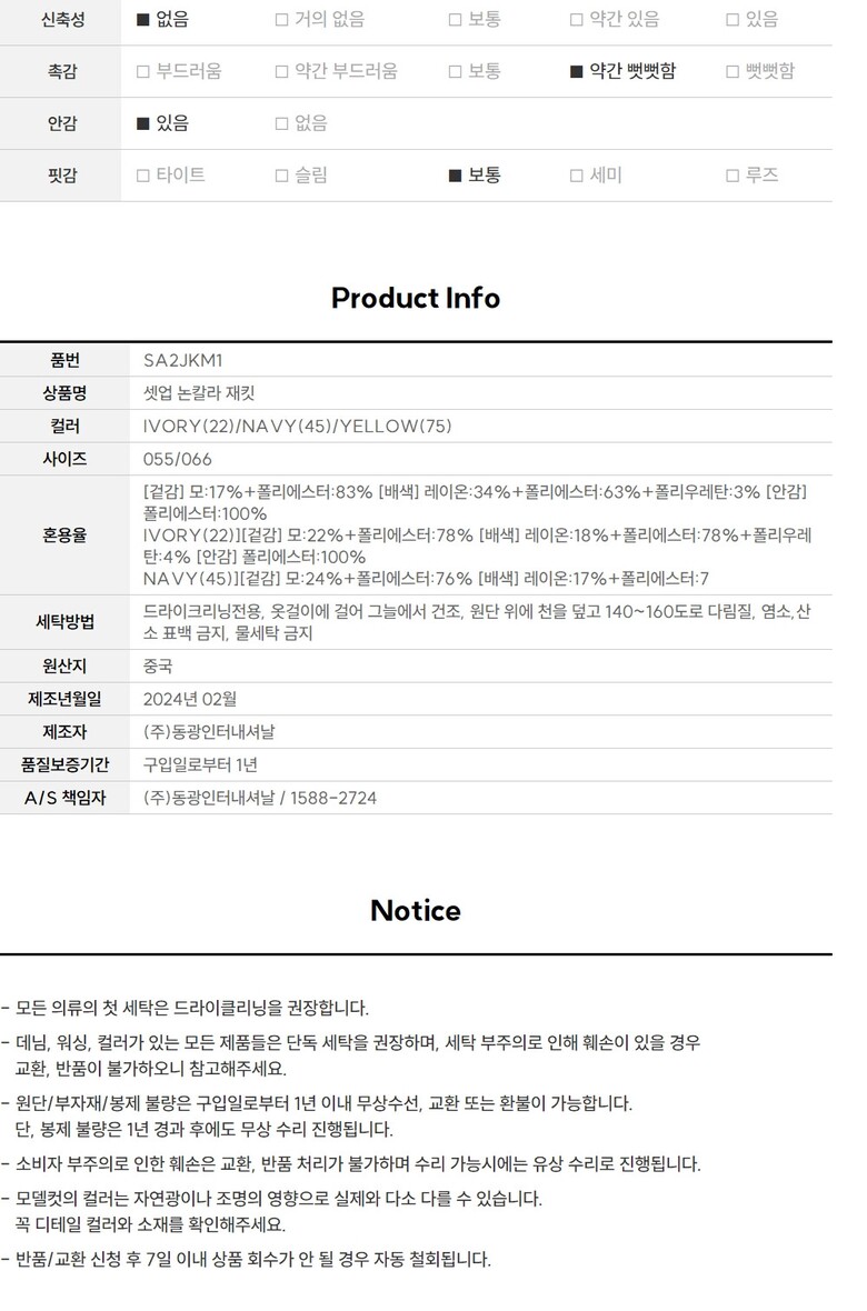 6. 세탁방법 및 취급시 주의사항 | 상품상세참조 |