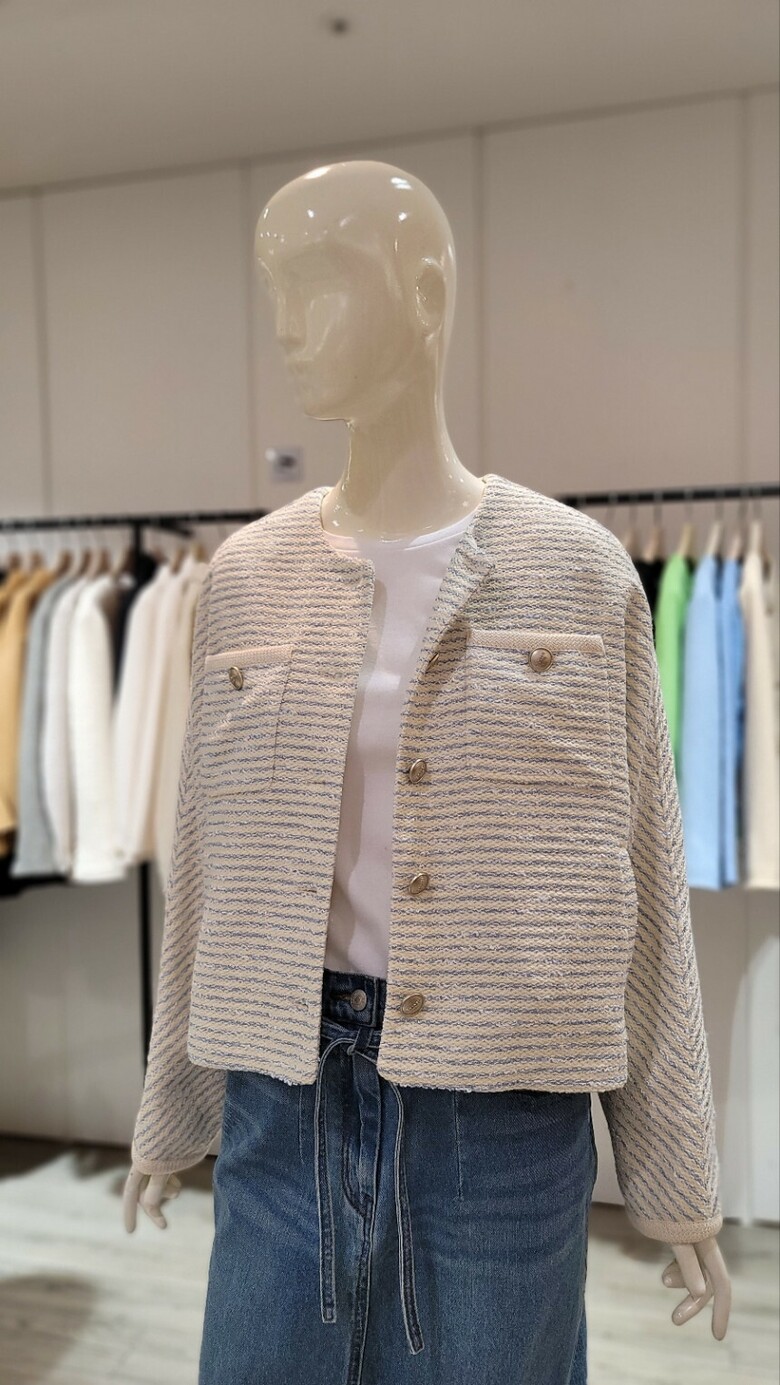 지컷 스트라이프 트위드 쟈켓 7224210605