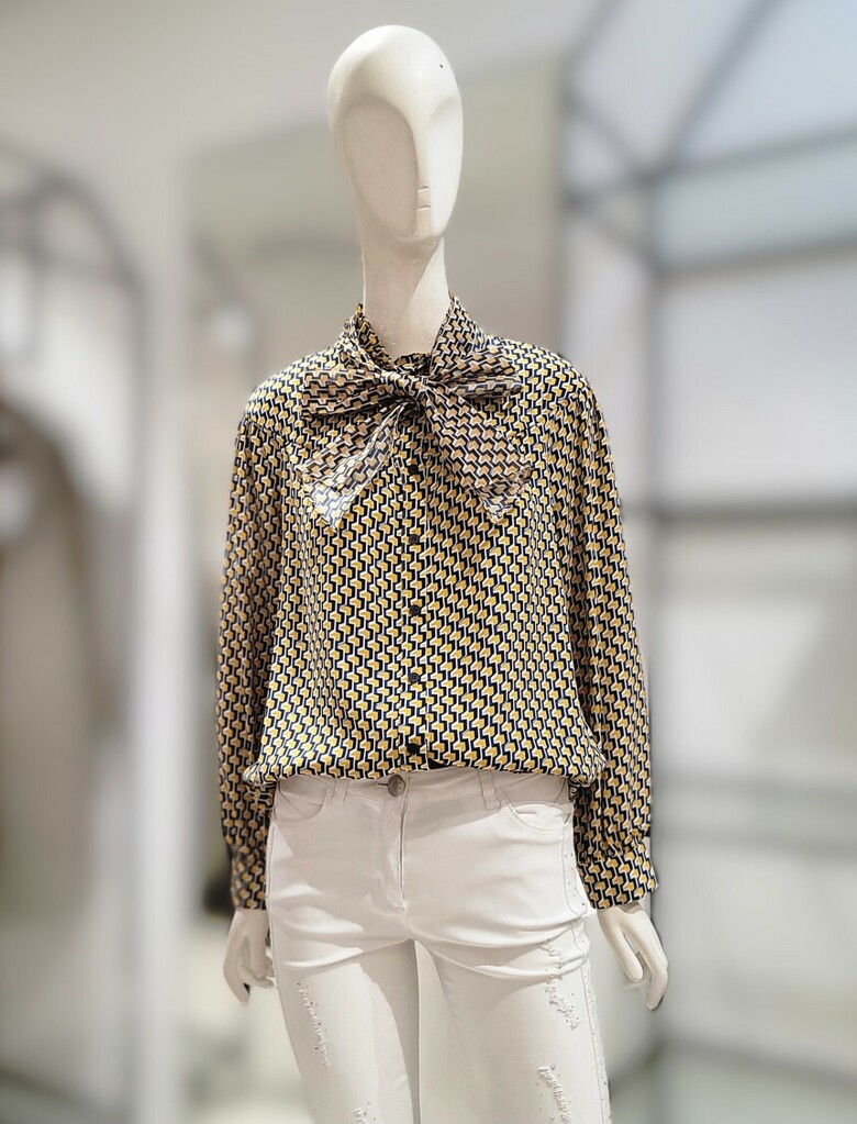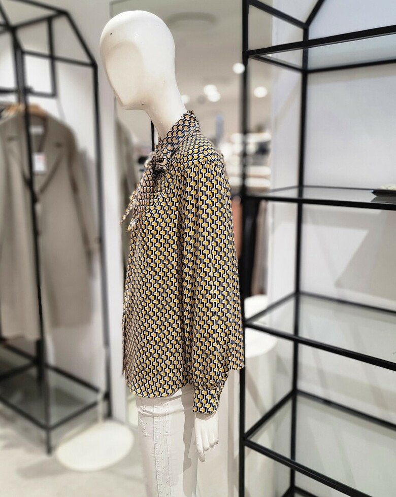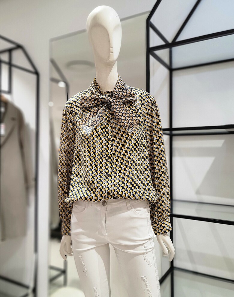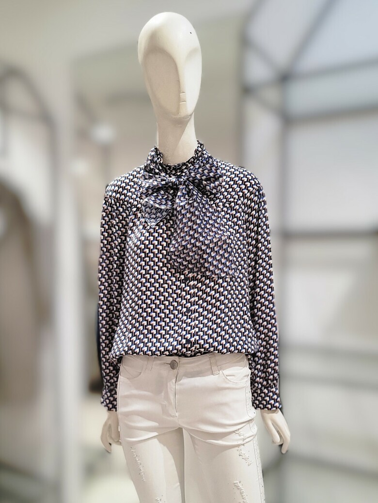 SI기하학패턴 리본 포인트 블라우스SFBAI2408