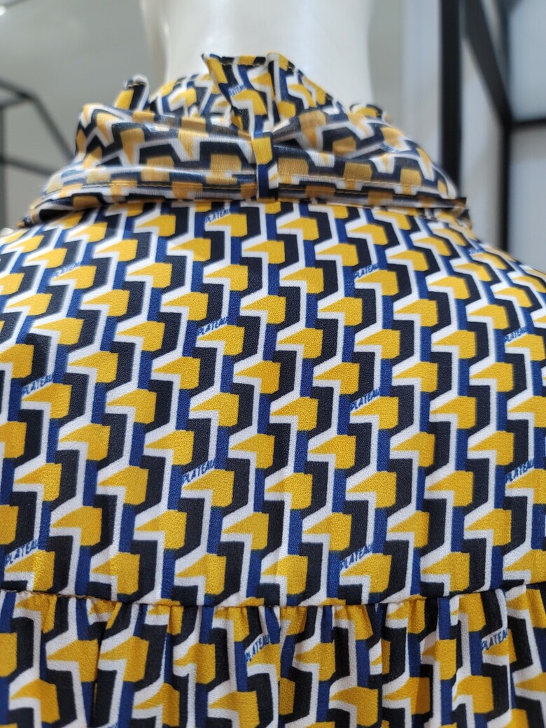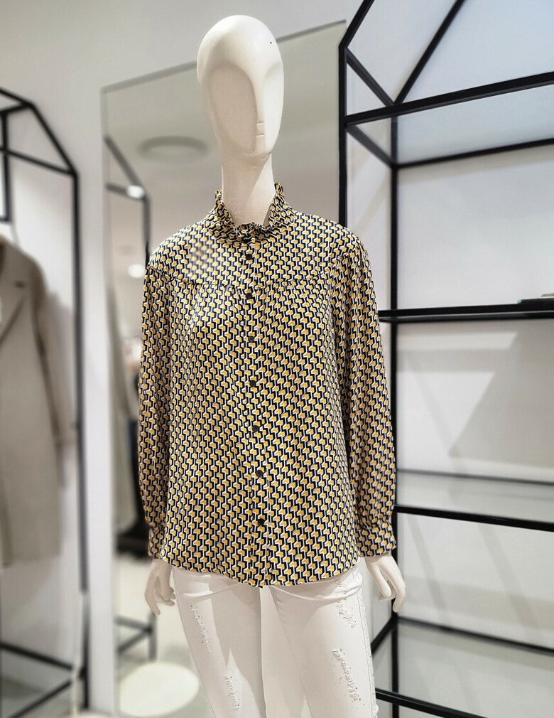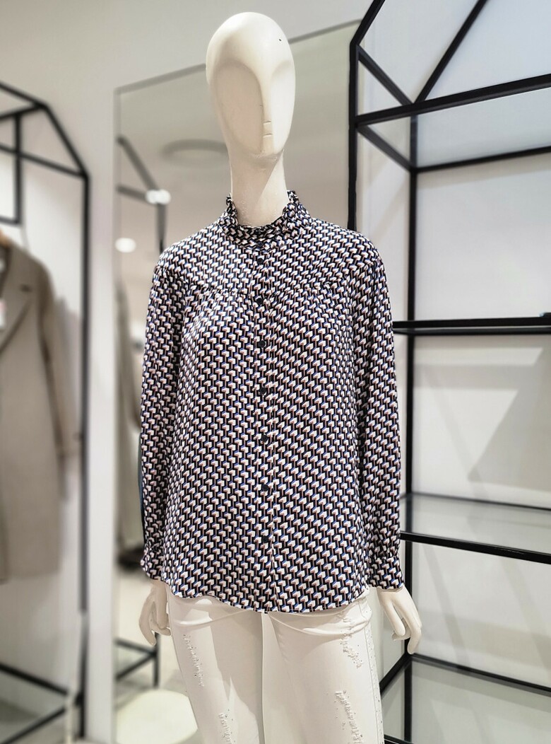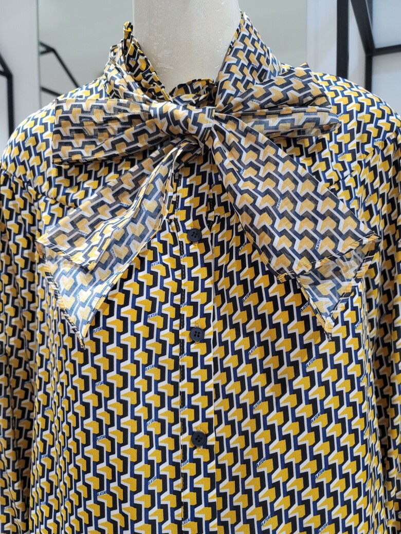 SI기하학패턴 리본 포인트 블라우스SFBAI2408
