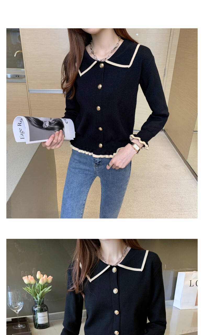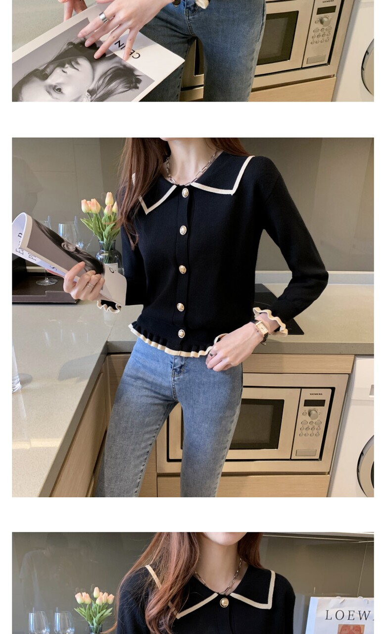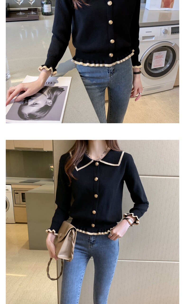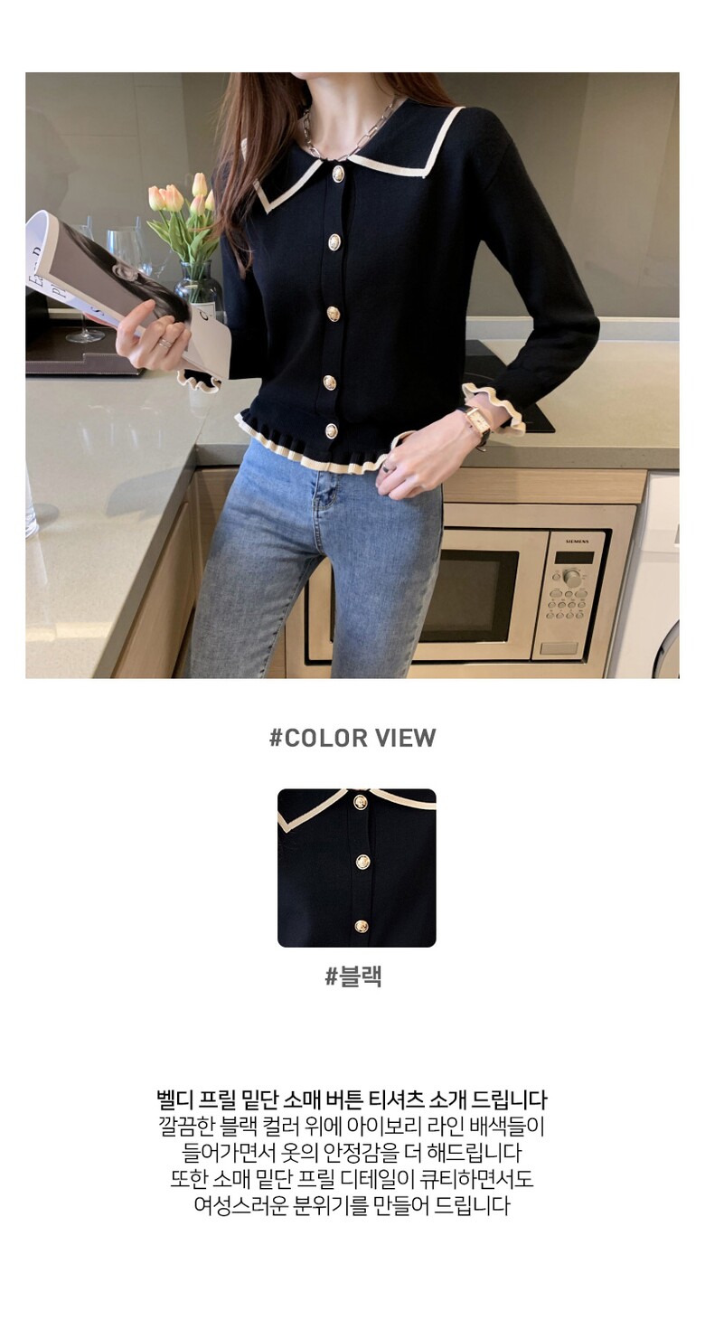 벨디 프릴 밑단 소매 버튼 니트티셔츠