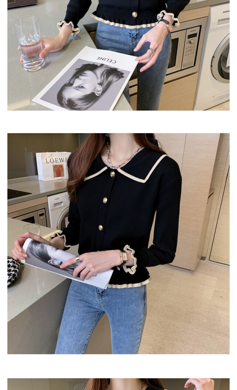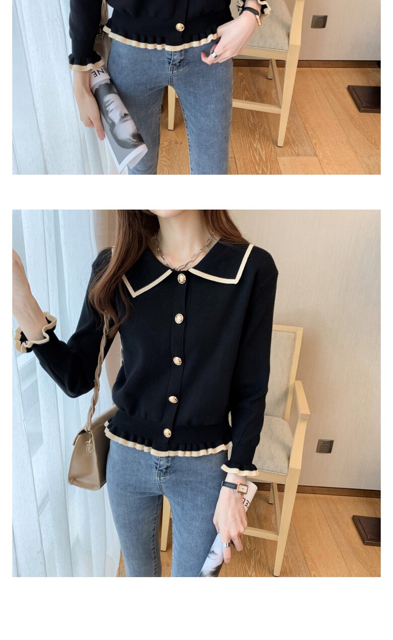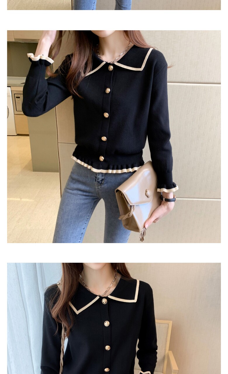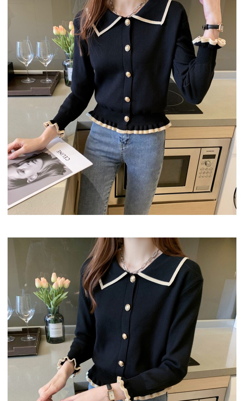 벨디 프릴 밑단 소매 버튼 니트티셔츠