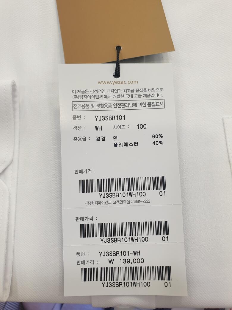 [예작셔츠] 면혼방 화이트 무지 일반핏셔츠 YJ3 SBR 101 WH