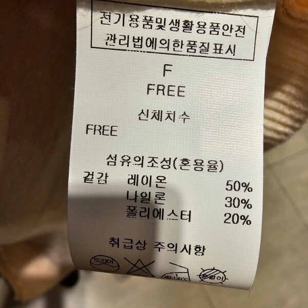 제품소재 : 레이온 50% 나일론 30% 폴리에스터 20%