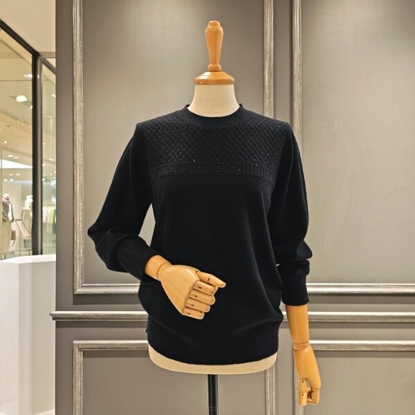 라운드 넥 디자인의 비즈 포인트 니트입니다~