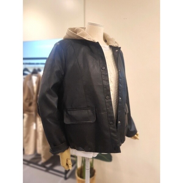 KOLTO201BK_배색 후드 에코 가죽 점퍼 블랙