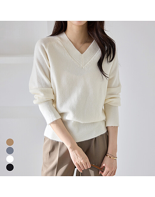 - 볼륨 퍼프소매 나그랑 브이넥 니트_M2410KN150D