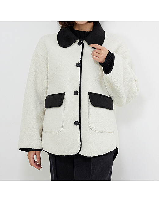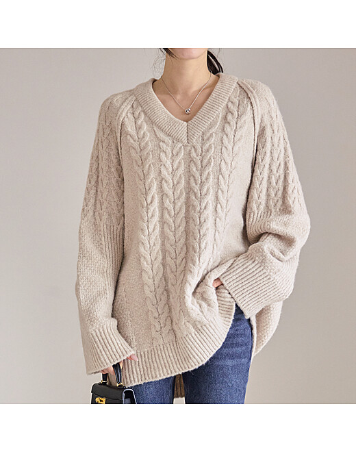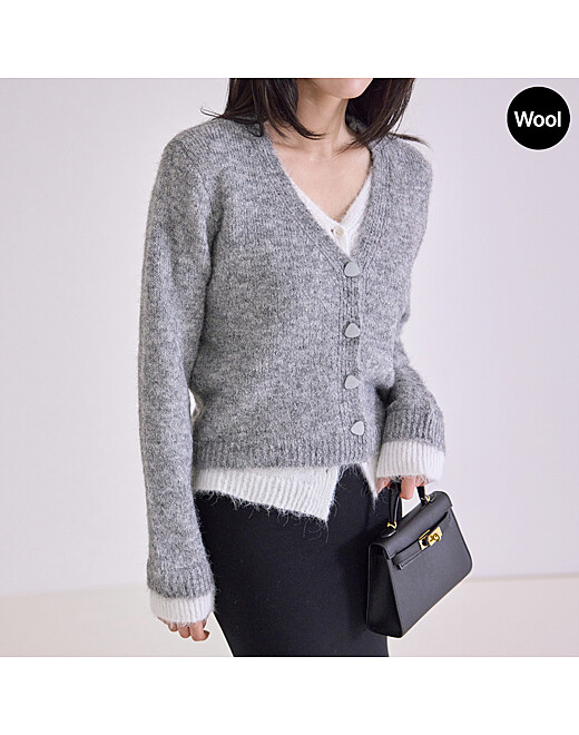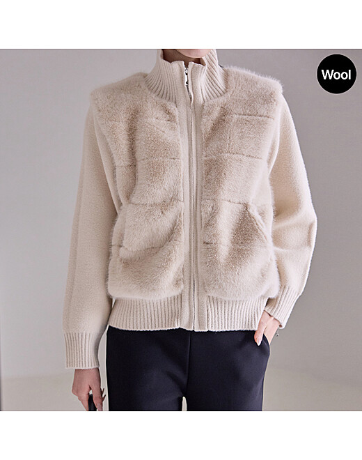 - 브이 꽈배기 배색 퍼 니트자켓_M2512JK066D